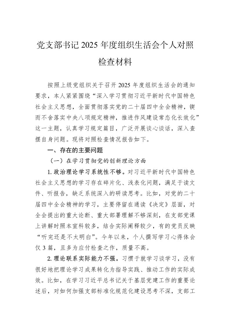 党支部书记,组织生活会,党支部,组织生活,强党性,支部书记,创新,生活,学习,先锋模范作用,整改措施,模范作用党支部书记2025年度组织生活会在学习贯彻党的创新理论方面加强党性锤炼方面发挥先锋模范作用方面发挥先锋模范作用方面改作风树新风方面五个方面存在的问题及整改措施党支部书记,组织生活会,党支部,组织生活,强党性,支部书记,创新,生活,学习,先锋模范作用,整改措施,模范作用党支部书记2025年度组织生活会在学习贯彻党的创新理论方面加强党性锤炼方面发挥先锋模范作用方面发挥先锋模范作用方面改作风树新风方面五个方面存在的问题及整改措施