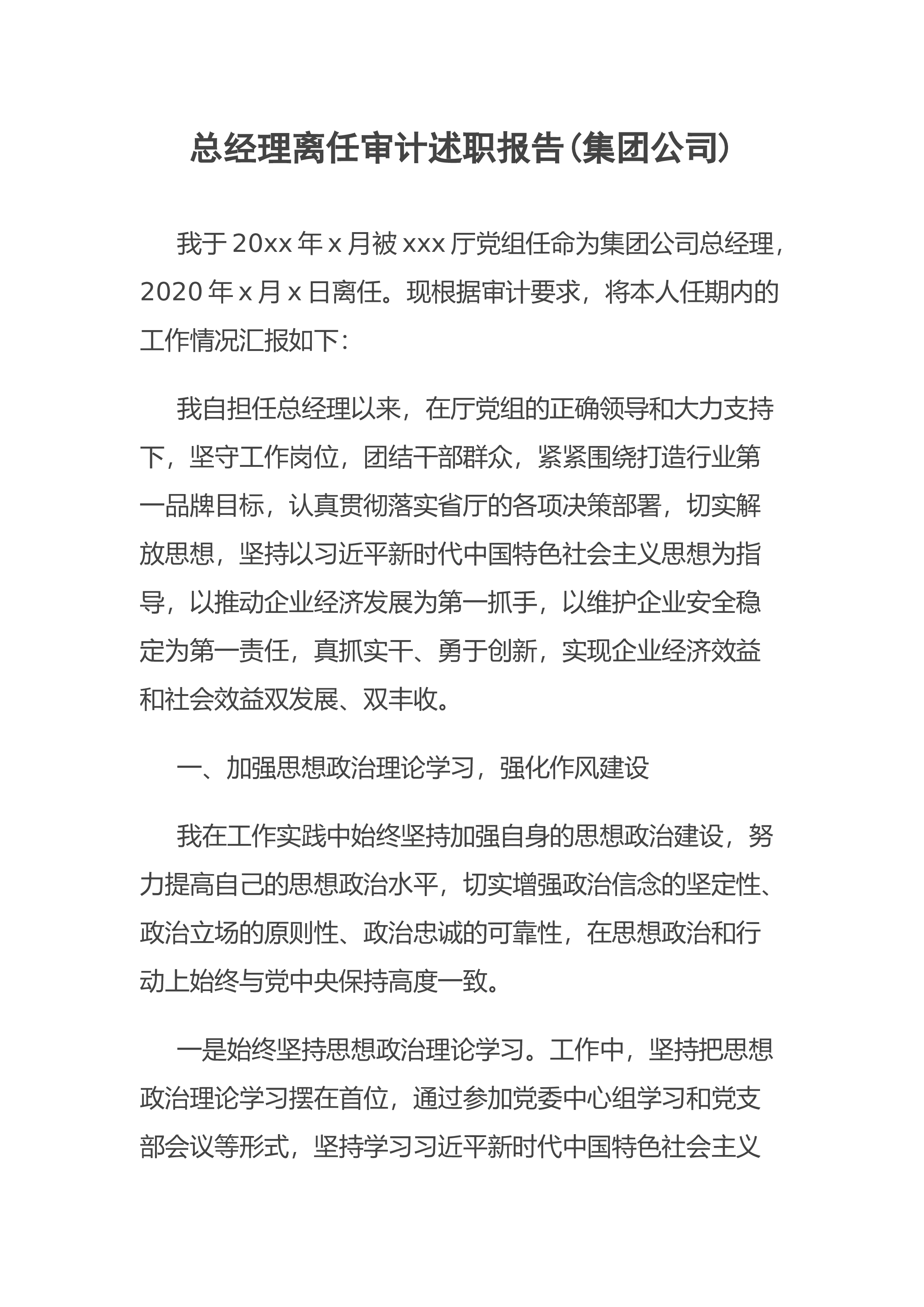 【国资国企】总经理离任审计述职报告