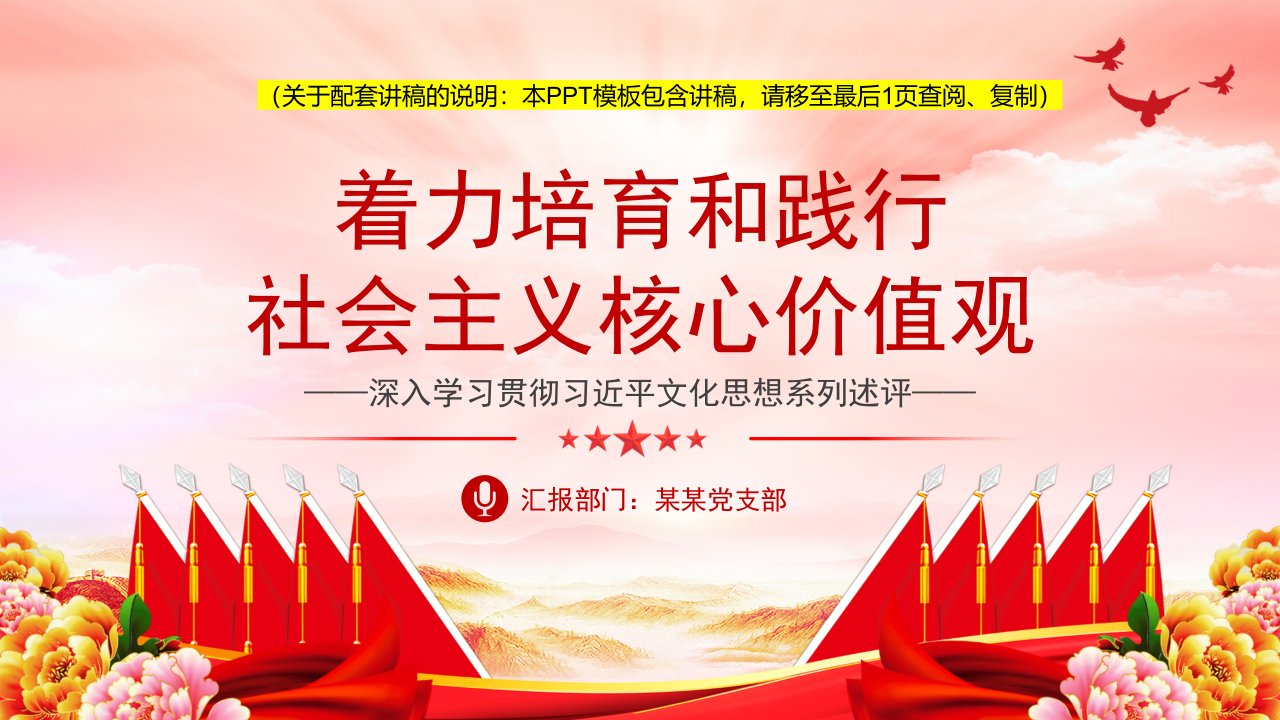 2024着力培育和践行社会主义核心价值观党课ppt模板(含配套讲稿)习近平文化思想专题党课下载