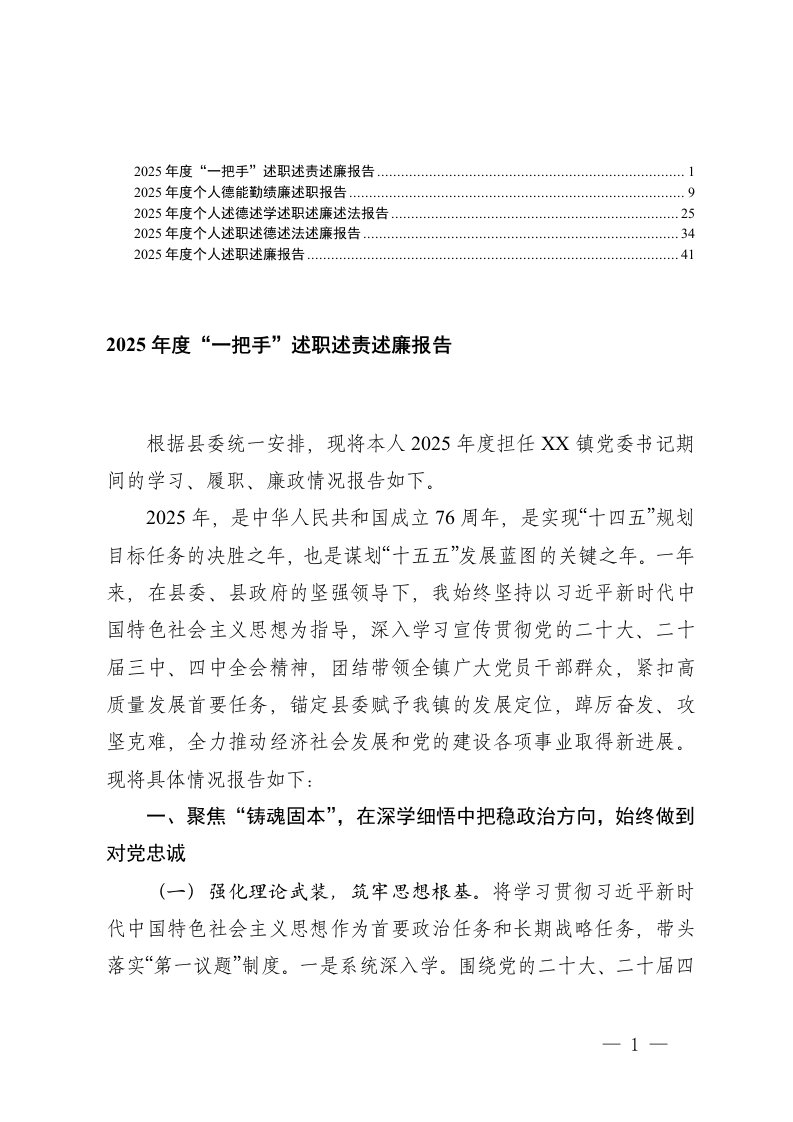 2025年度一把手个人述职述责述廉述德述法报告德能勤绩廉述职报告