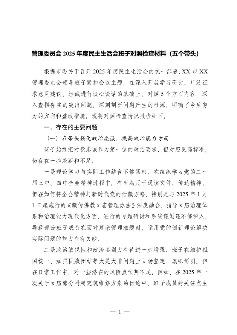 2025年专题组织生活会批评与自我批评意见汇编