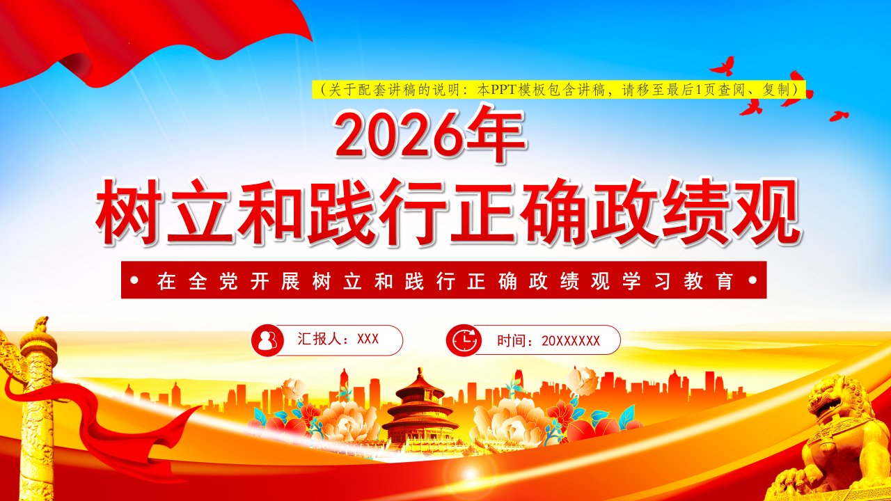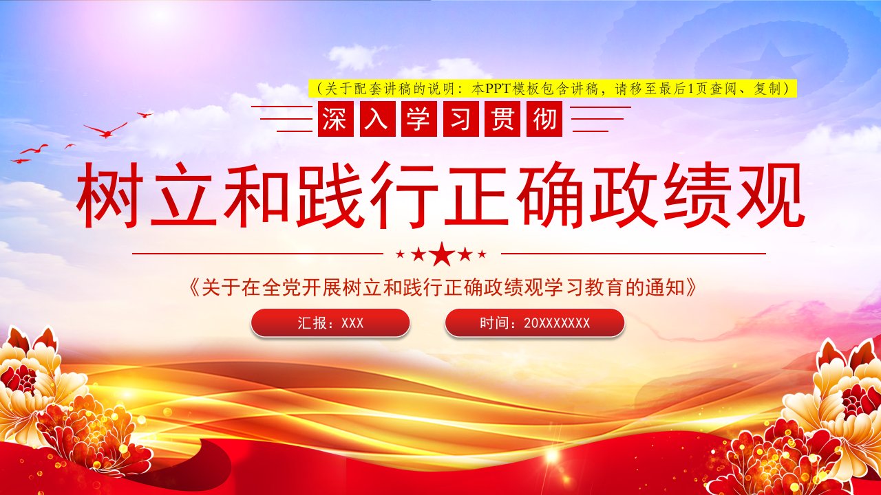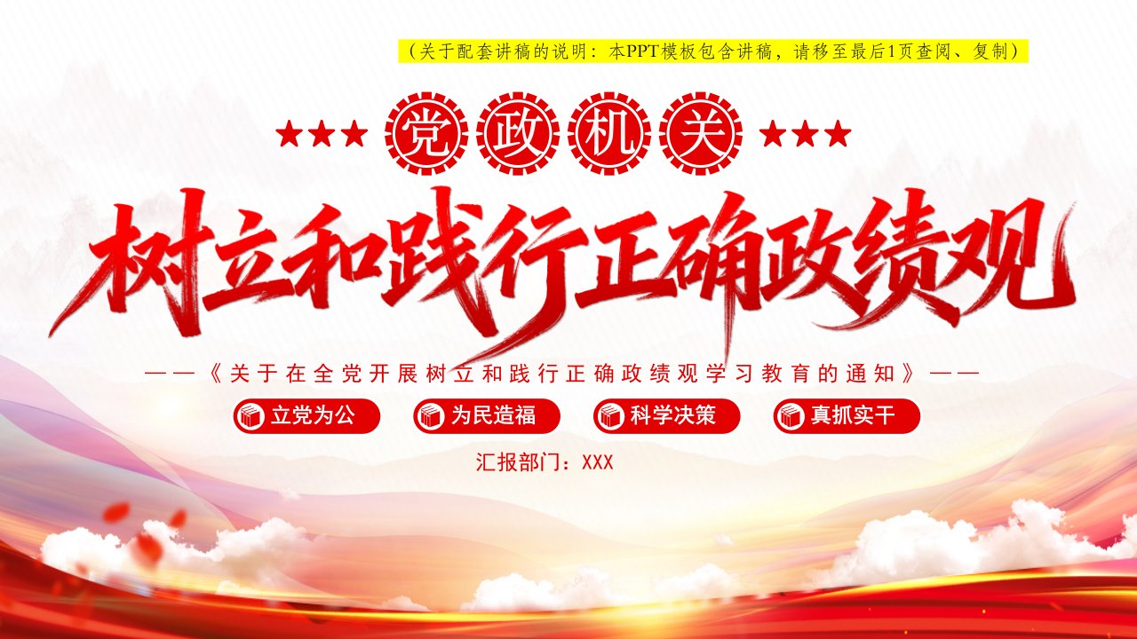 2026微党课「党员学习ppt模板」《关于在全党开展树立和践行正确政绩观学习教育的通知》党课ppt模板(含配套讲稿)