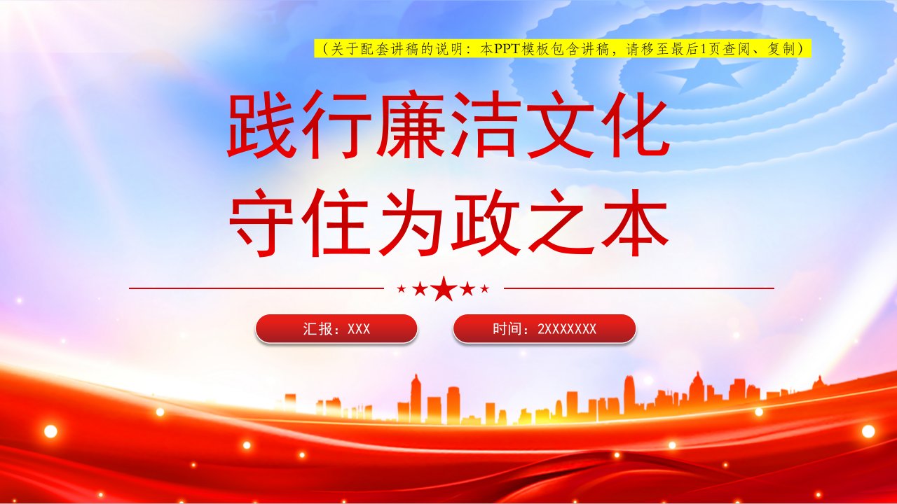 2026微党课「廉洁反腐ppt模板」廉洁文化建设党课践行廉洁文化 守住为政之本党课ppt模板(含配套讲稿)
