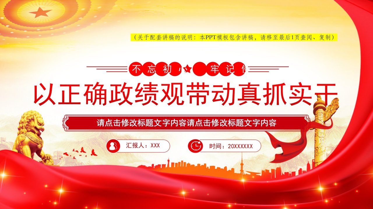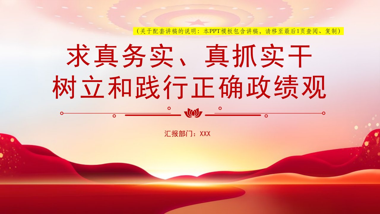 2026微党课「党员学习ppt模板」求真务实真抓实干 树立和践行正确政绩观党课ppt模板(含配套讲稿)
