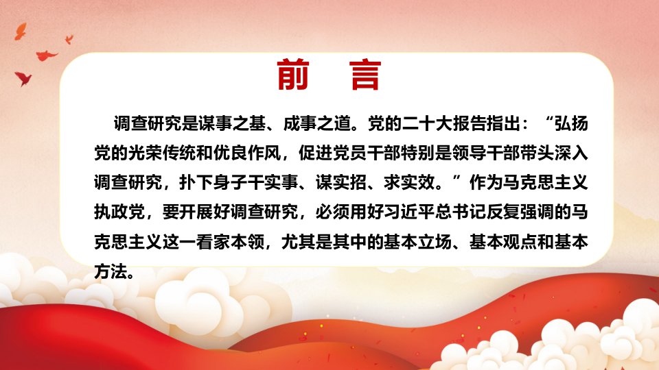 2024微党课2023大兴调查研究须用好马克思主义看家本领党课ppt模板(含配套讲稿)弘扬党的光荣传统和优良作风基层党组织党员专题党课教育课件