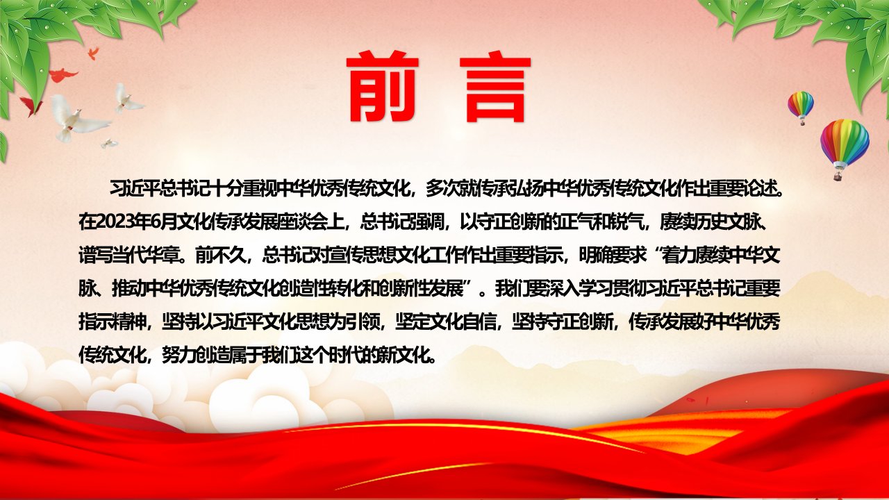 2024微党课传承发展好中华优秀传统文化党课ppt模板(含配套讲稿)2023深入学习贯彻习近平总书记文化思想党组织党群学习培训党课课件