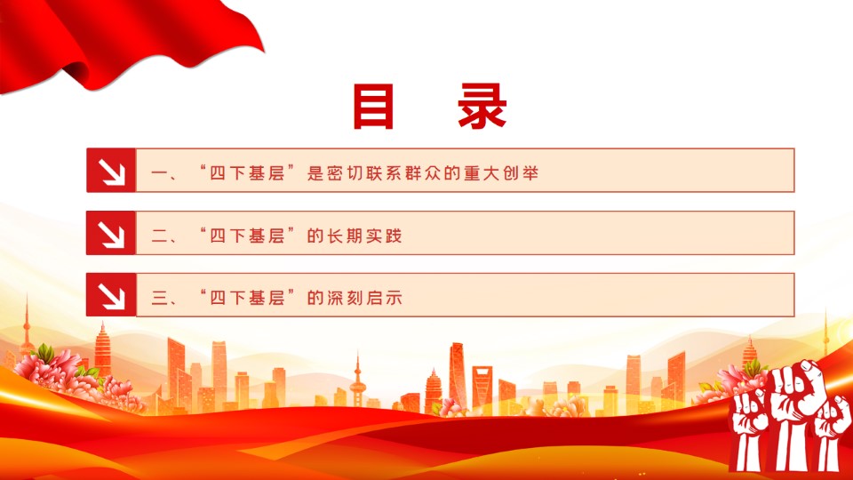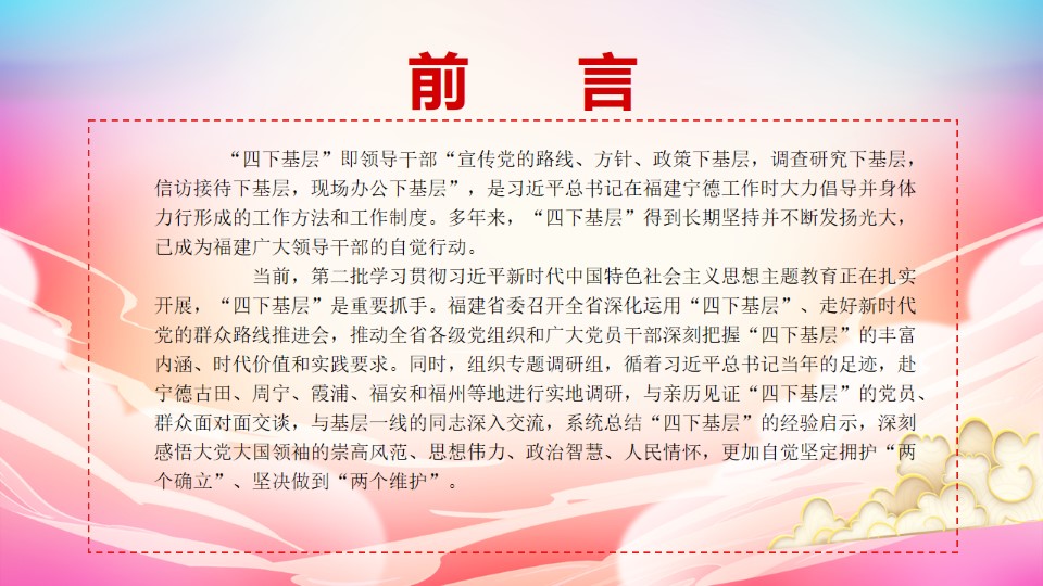 2024微党课2023坚持“四下基层”走好群众路线ppt模板(带内容)学习贯彻习近平新时代中国特色社会主义思想教育党组织党支部党员学习课件