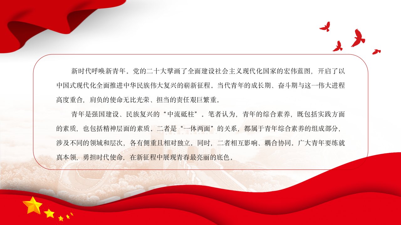 2024微党课新时代青年为民族复兴挺膺担当党课ppt模板(带内容)广大青年要练就真本领勇担时代使命思想教育党课