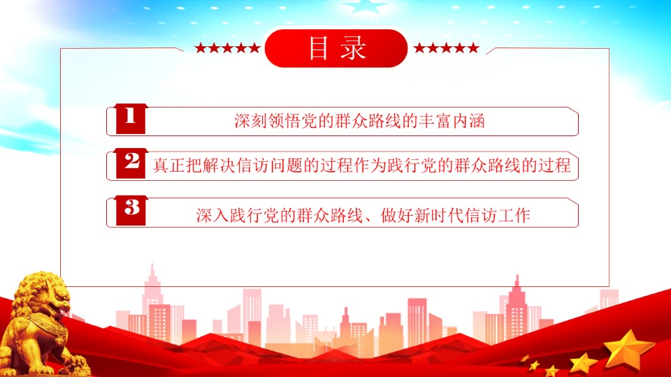 2024微党课2023坚持党的群众路线做好新时代信访工作ppt模板(带内容)党员干部学习教育专题党课课件
