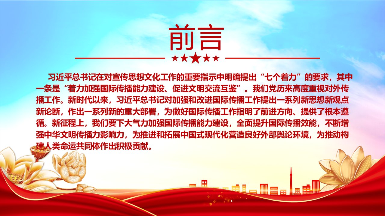2024微党课大力推动国际传播能力建设ppt模板(含配套讲稿)贯彻落实习近平总书记在对宣传思想文化工作的重要指示专题党课课件