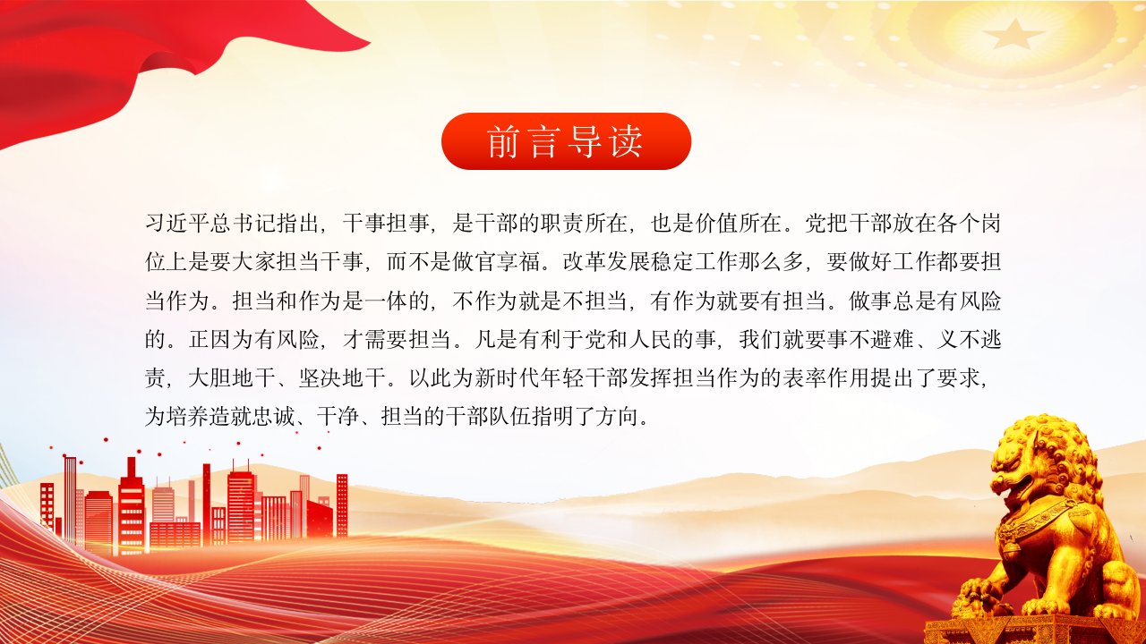 2024勇担当善作为党课ppt模板(含配套讲稿)发挥新时代年轻干部担当作为的表率作用党课课件下载