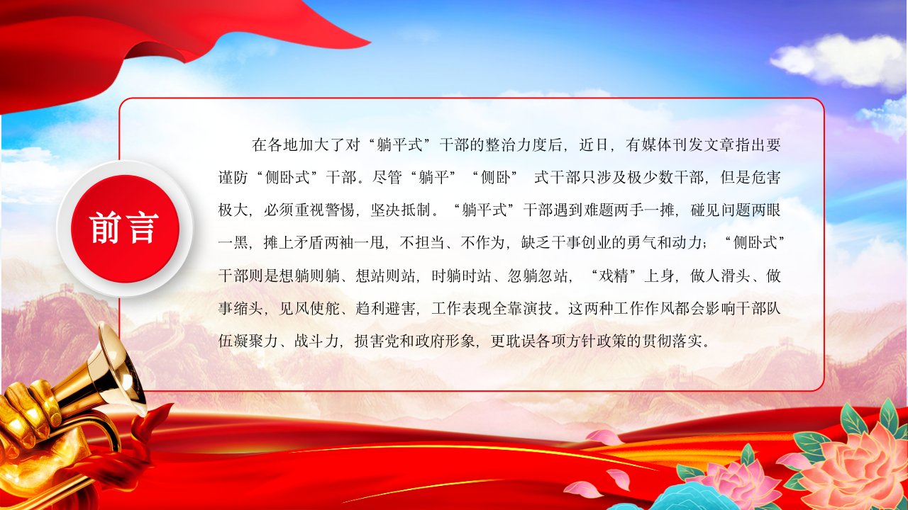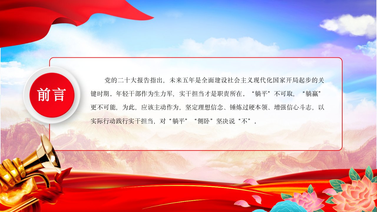 2024微党课不做躺平式侧卧式干部党课ppt模板(含配套讲稿)坚定理想信念增强信心斗志挺膺担当再出发党员学习专题党课