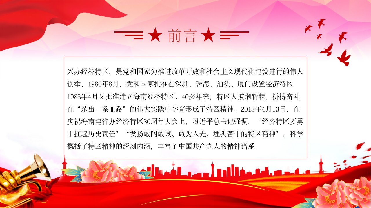 2024微党课特区精神党课ppt模板(含配套讲稿)敢闯敢试敢为人先埋头苦干中国共产党人精神谱系党课