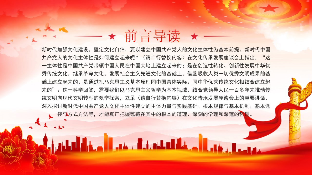 2024微党课论新时代中国共产党人文化主体性的建立党课ppt模板(带内容)党支部党课ppt模板下载