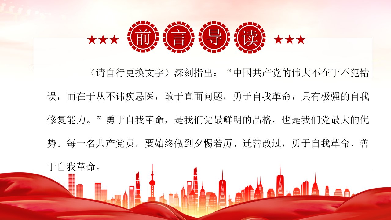 2024微党课勇于自我革命党课ppt模板(带内容)在改造主观世界树立问题意识付诸实际行动上下功夫微党课