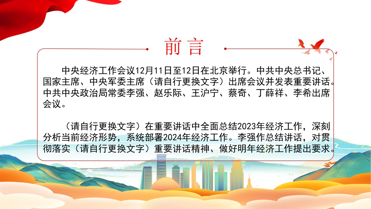 中央经济工作会议重点内容ppt模板(带内容)总结2023年经济工作部署2024年经济工作课件模板