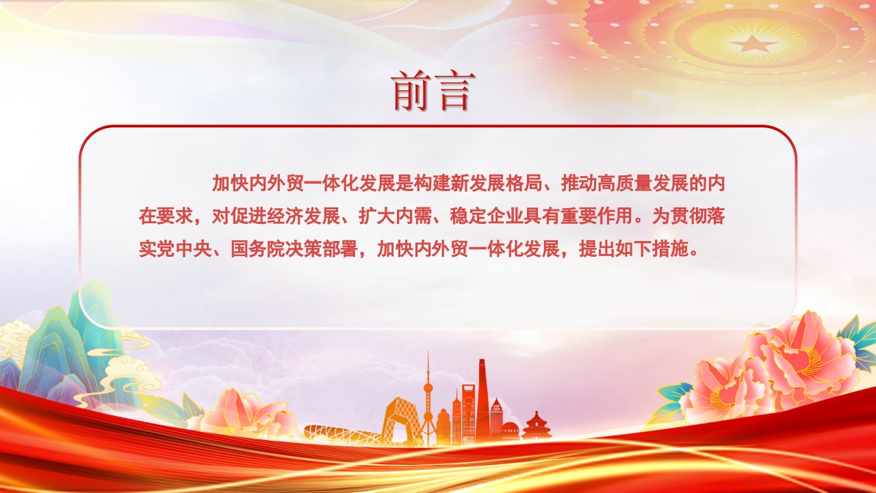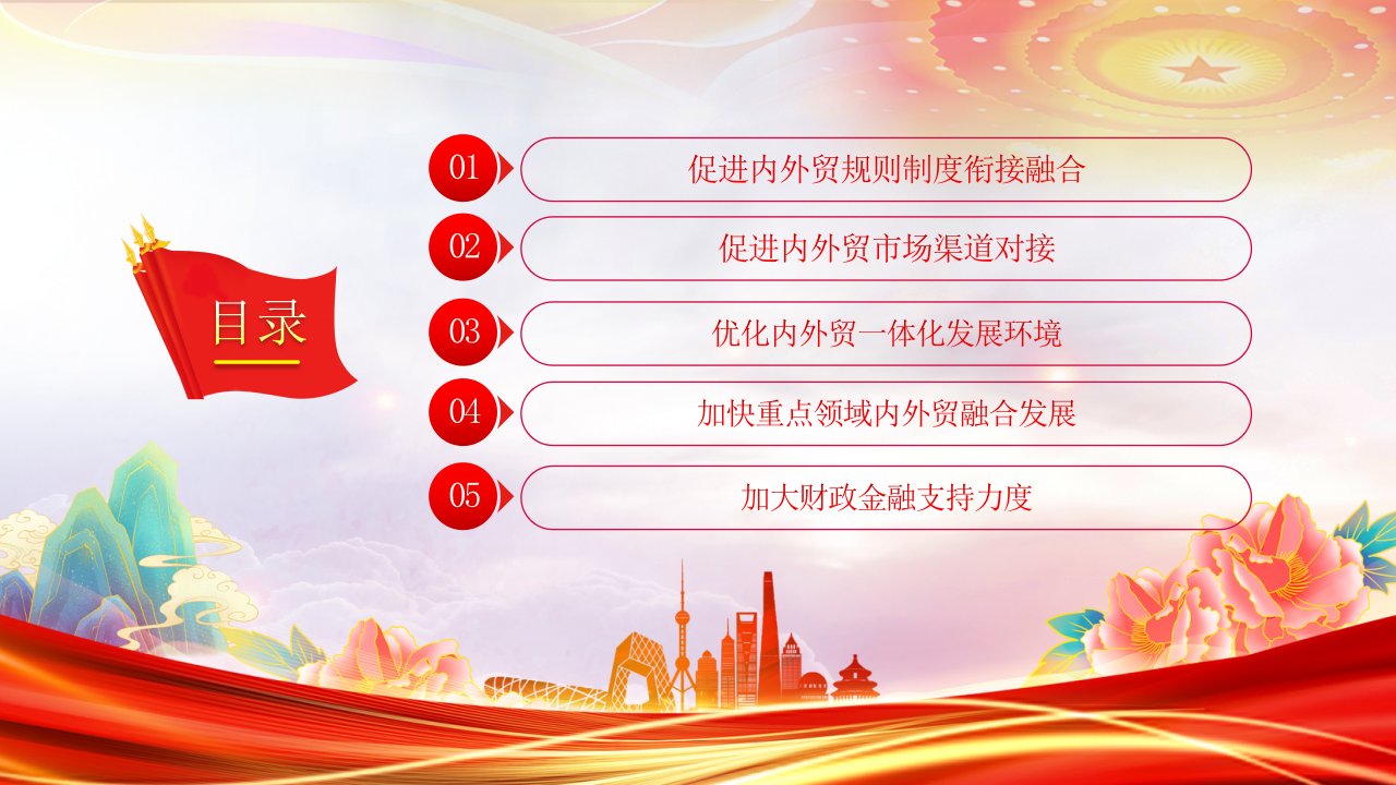 2024微党课2023《关于加快内外贸一体化发展的若干措施》全文党课ppt模板(带内容)T课件