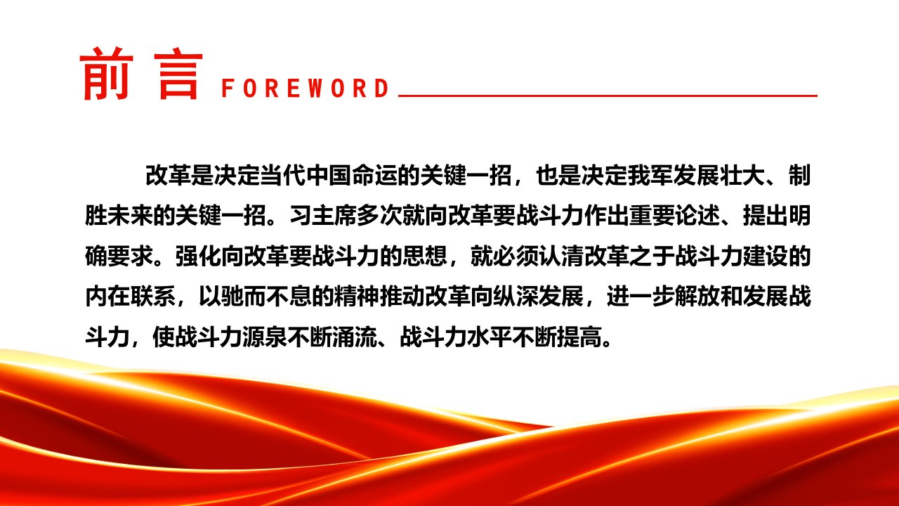 2024微党课提高向改革要战斗力的觉悟党课ppt模板(含配套讲稿)大气学习习近平强军思想微党课课件