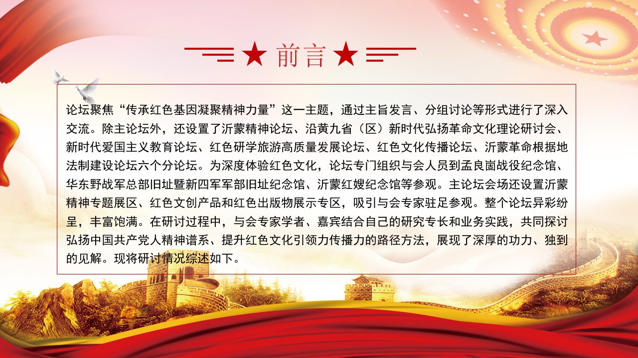 2024微党课2023传承红色基因凝聚精神力量党课ppt模板(带内容)文化论坛综述专题