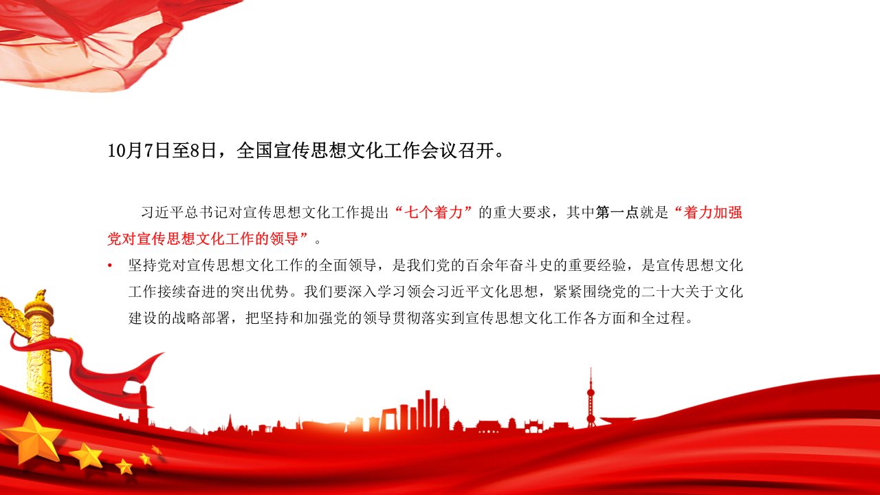 2024微党课着力加强党对宣传思想文化工作的领导党课ppt模板(含配套讲稿)全国宣传思想文化工作会议党课课件