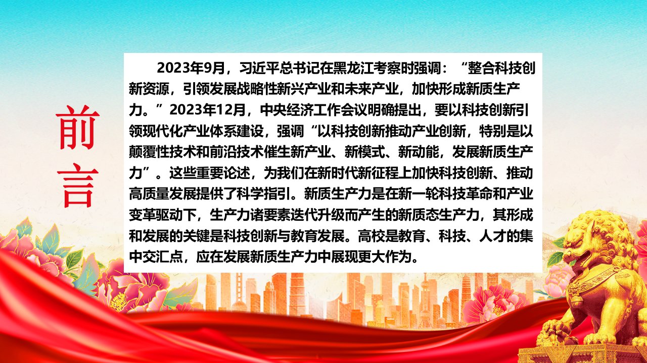 2024微党课在发展新质生产力中高校应展现更大作为党课ppt模板(含配套讲稿)大力发展新质生产力专题微党课