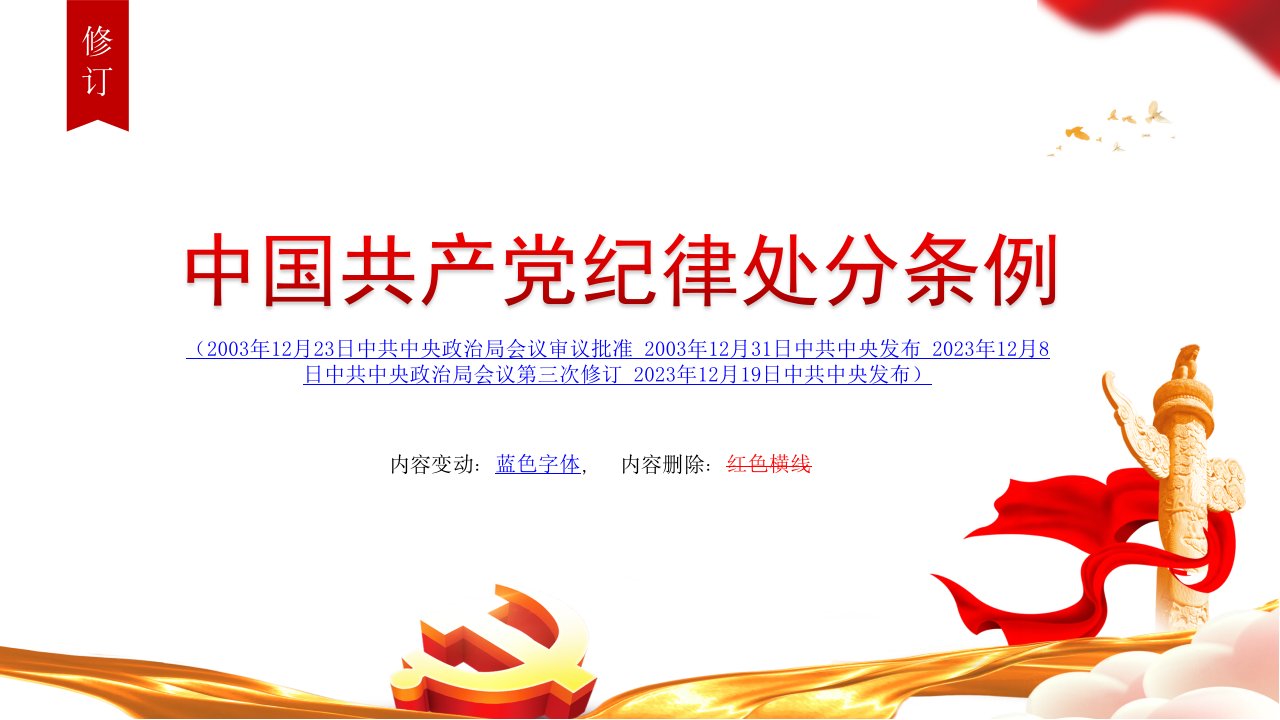 2024微党课《中国共产党纪律处分条例》2023年新旧对照版ppt模板(带内容)加强党的纪律建设党课课件