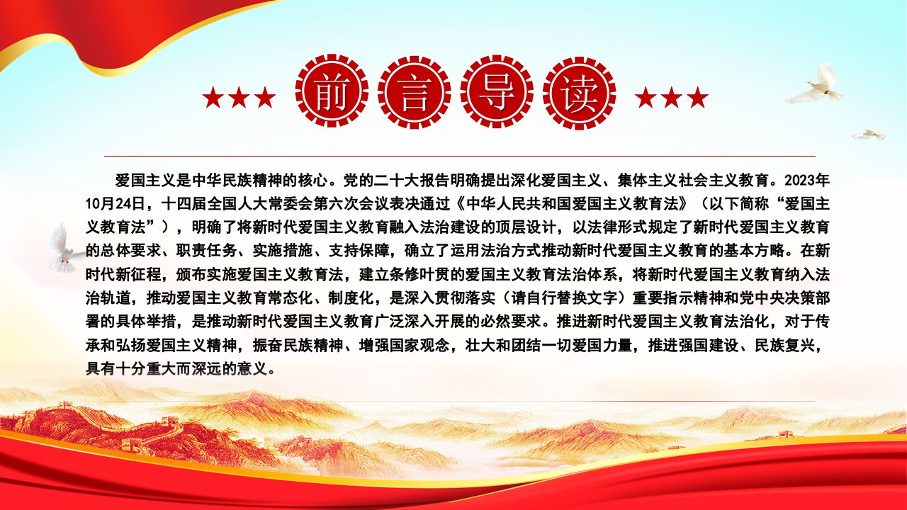 2024扎实推进新时代爱国主义教育法治化ppt模板(带内容)爱国主义教育法党课