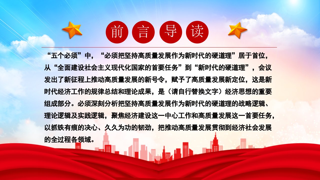 2024微党课新时代的经济发展的硬道理是坚持高质量发展ppt模板(带内容)中央经济工作会议
