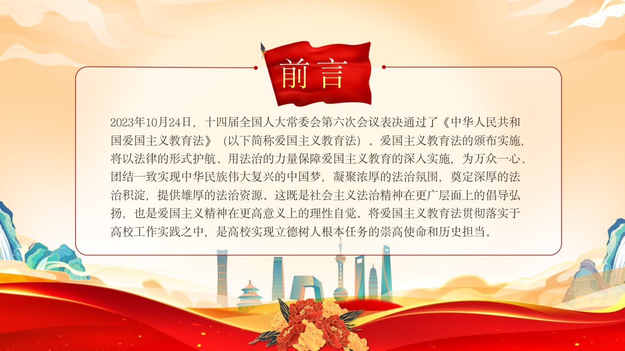 2024以法治手段推动和保障爱国主义教育党课ppt模板(含配套讲稿)学习爱国主义教育法党课课件