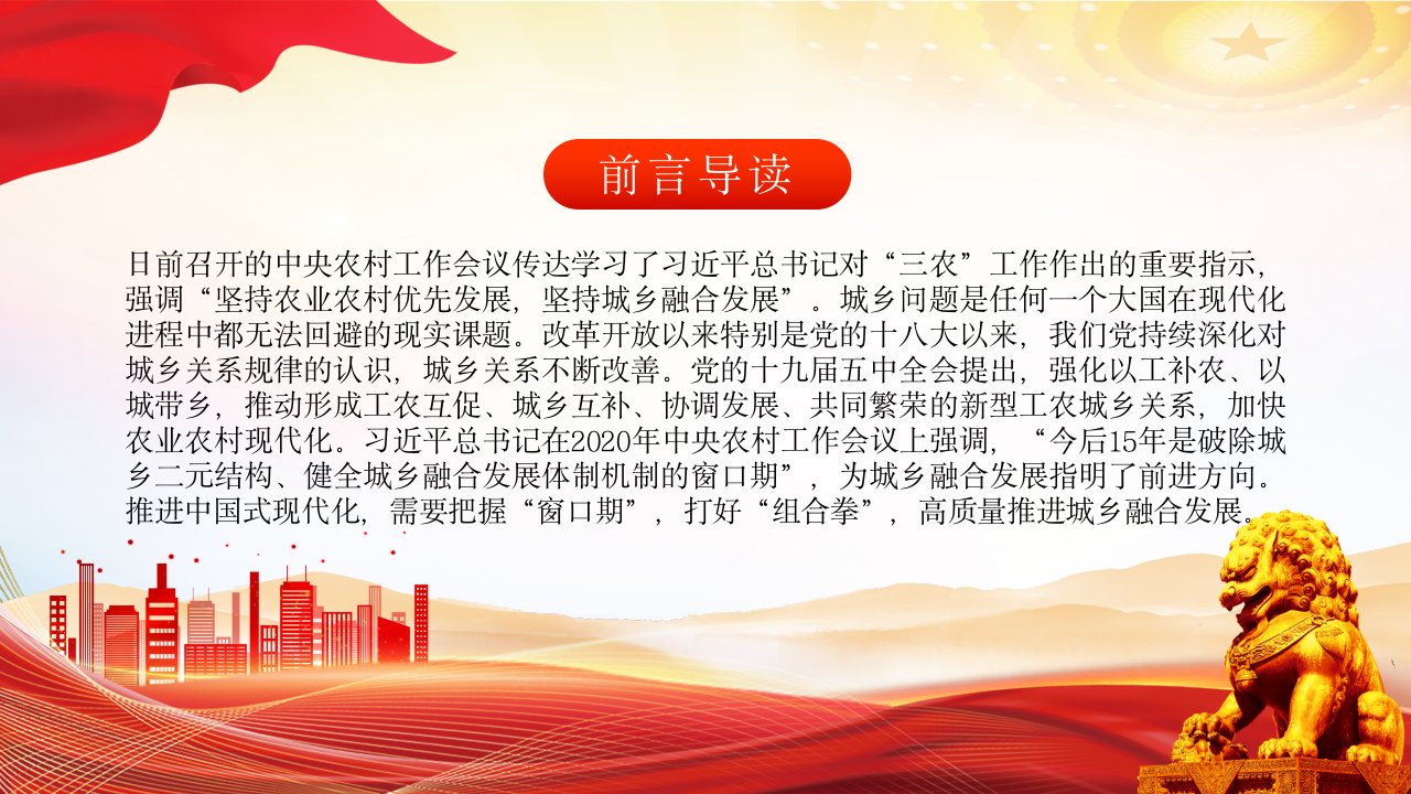 2024高质量推进城乡融合发展党课ppt模板(含配套讲稿)深入学习中央经济工作会议之三农工作重要指示党课课件