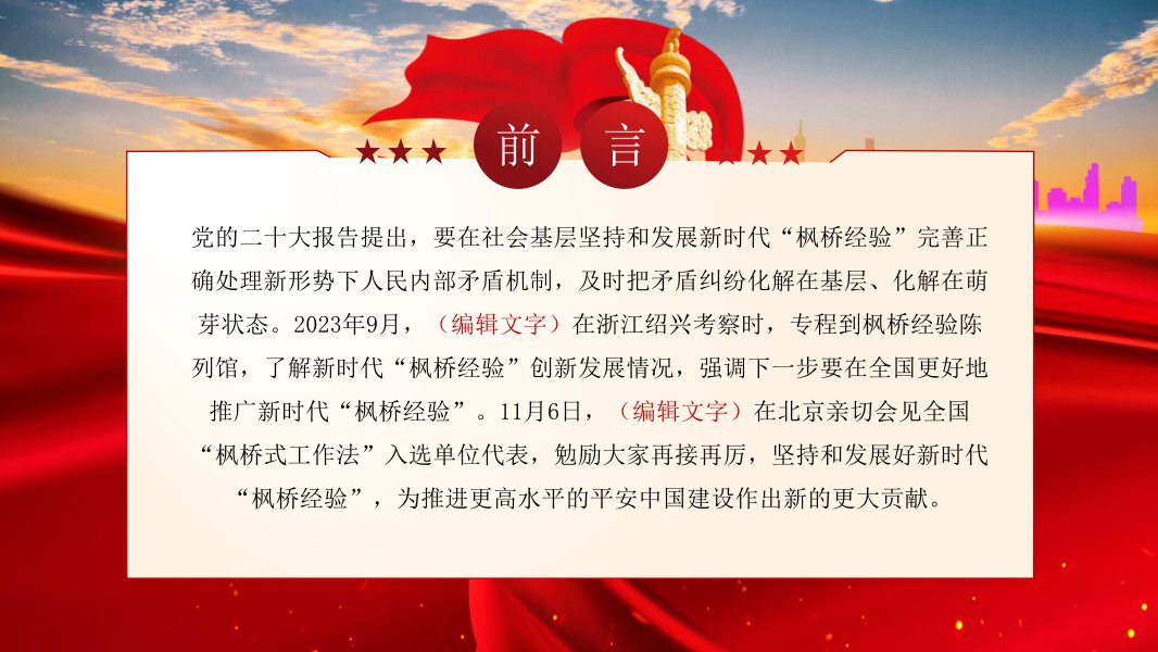 2024坚持和发展新时代枫桥经验党课ppt模板(带内容)党支部团支部党员干部学习党课课件