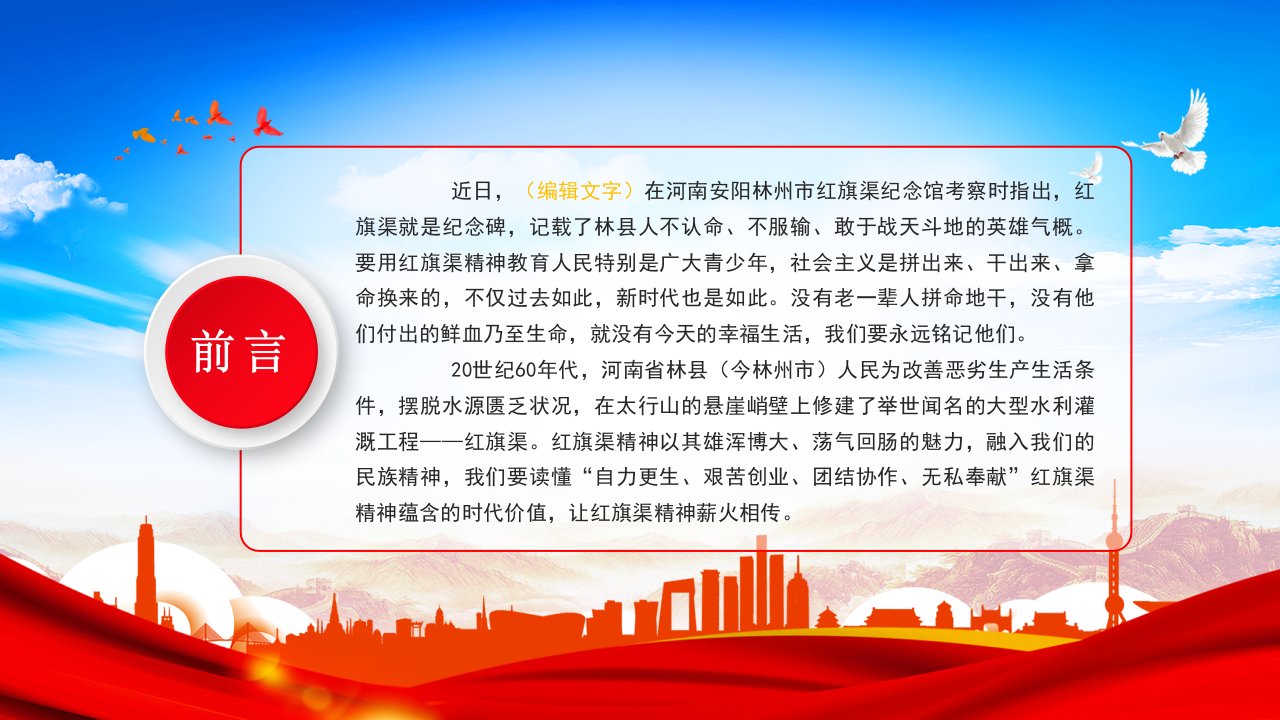 2024弘扬红旗渠精神的时代价值党课ppt模板(带内容)党支部团支部党员干部学习党课课件