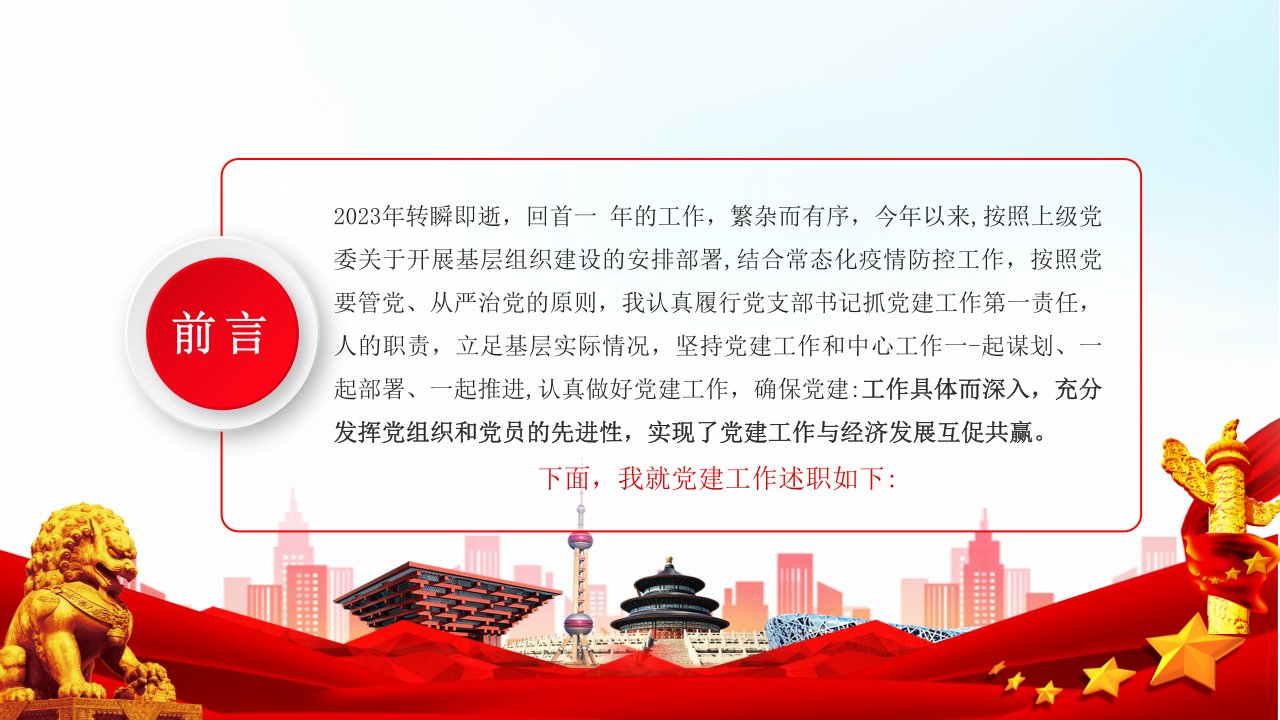 2024党支部书记抓基层党建工作述职报告党课ppt模板(带内容)党支部党课ppt模板下载