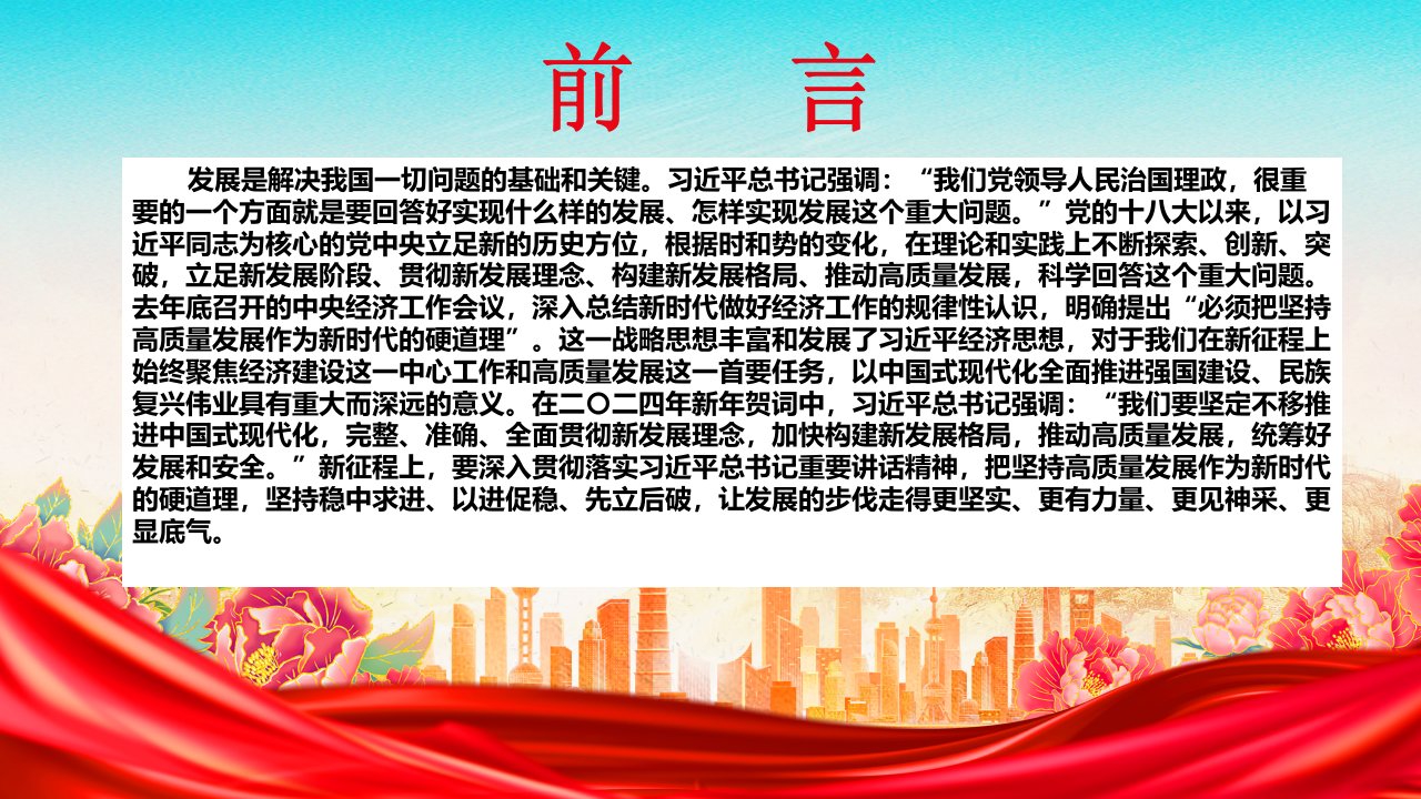 2024始终将坚持高质量发展作为新时代的硬道理党课ppt模板(带内容)习近平经济发展思想专题党课