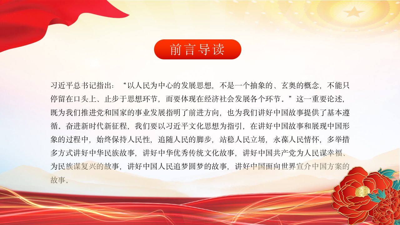2024五个维度讲好中国故事党课ppt模板(带内容)以人民为中心专题党课