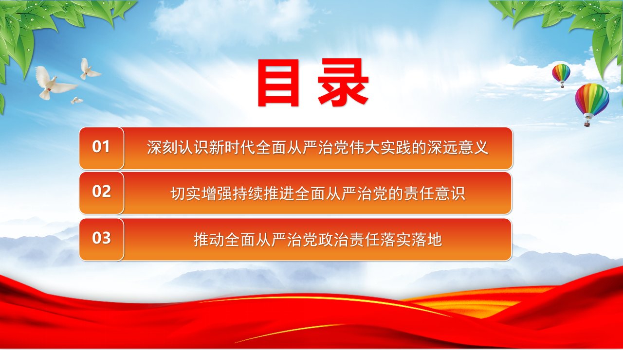 2024微党课坚定不移落实全面从严治党政治责任ppt红色党建学习贯彻习近平从严治党党建思想微党课