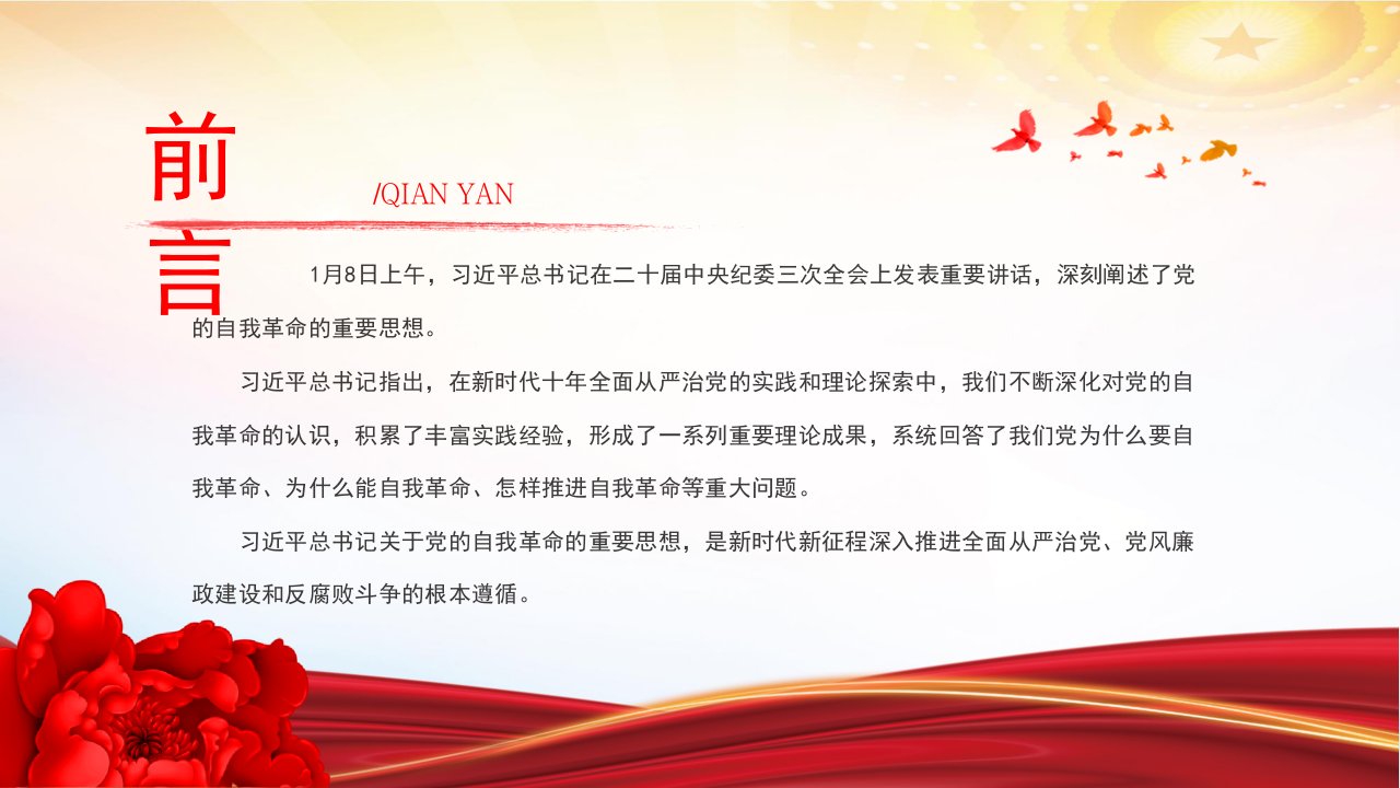2024微党课深刻阐述了党的自我革命的重要思想党课ppt模板(含配套讲稿)学习二十届中央纪委三次全会重要讲话课件
