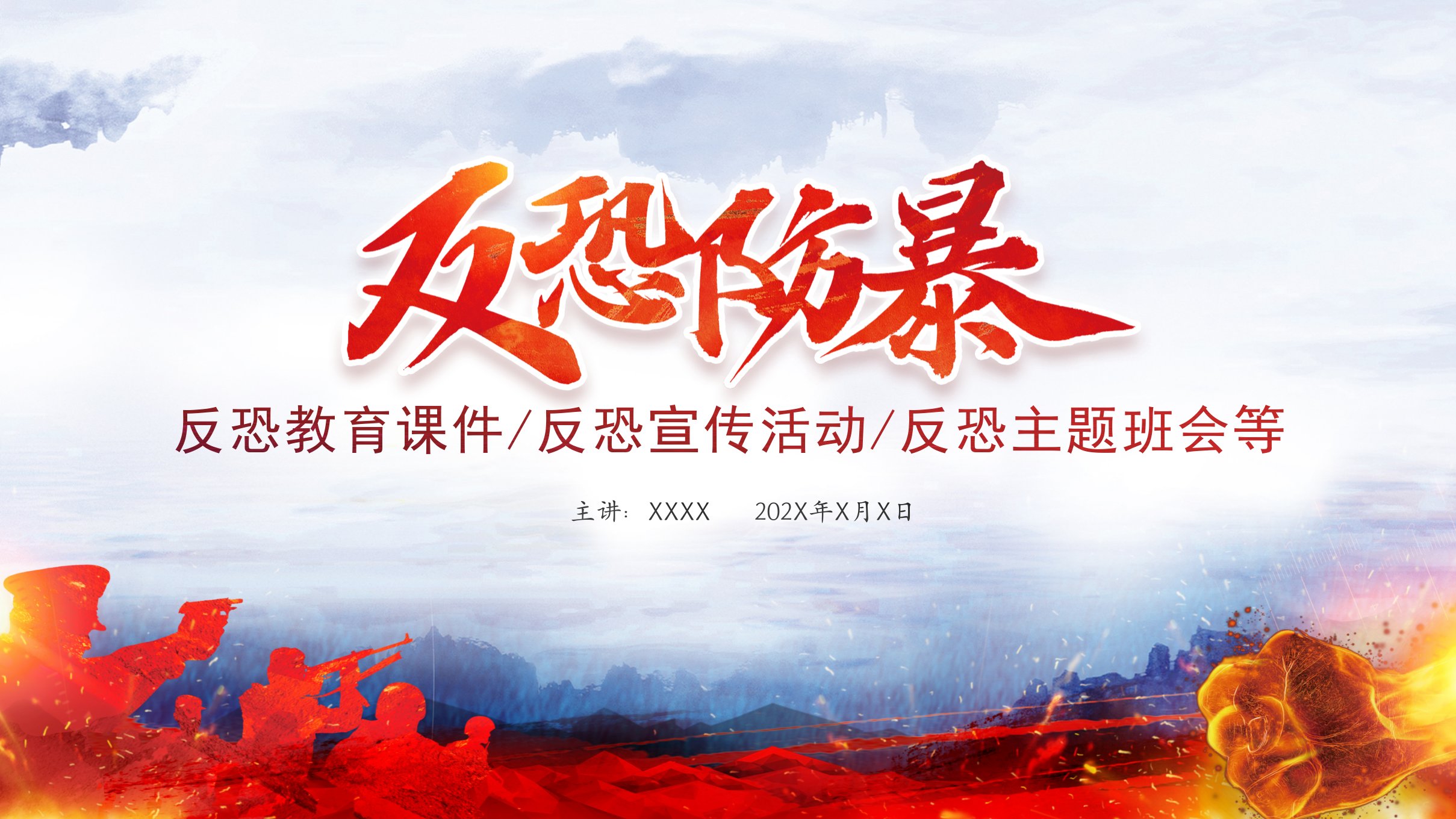 2024反恐防暴安全教育公安警察党课ppt模板(带内容)党支部党课ppt模板下载