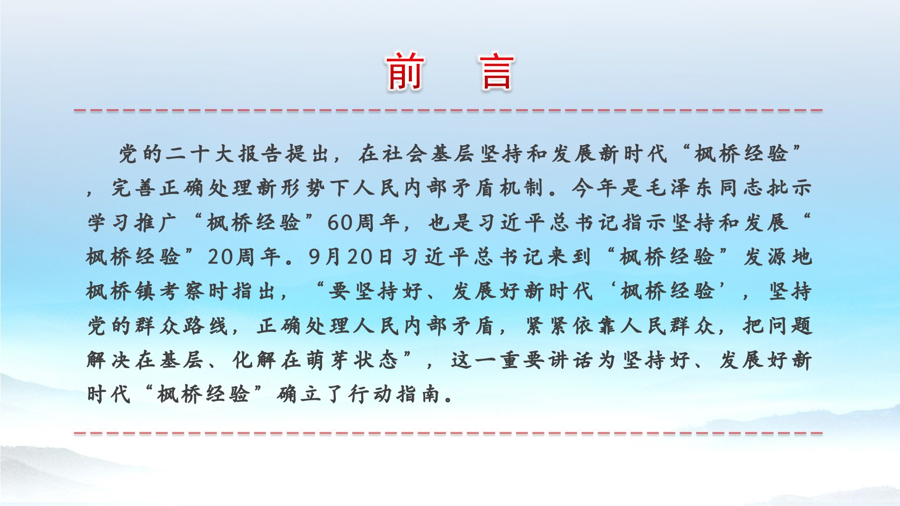 2024坚持好、发展好新时代“枫桥经验”ppt模板(带内容)党支部团支部党员干部学习党课课件