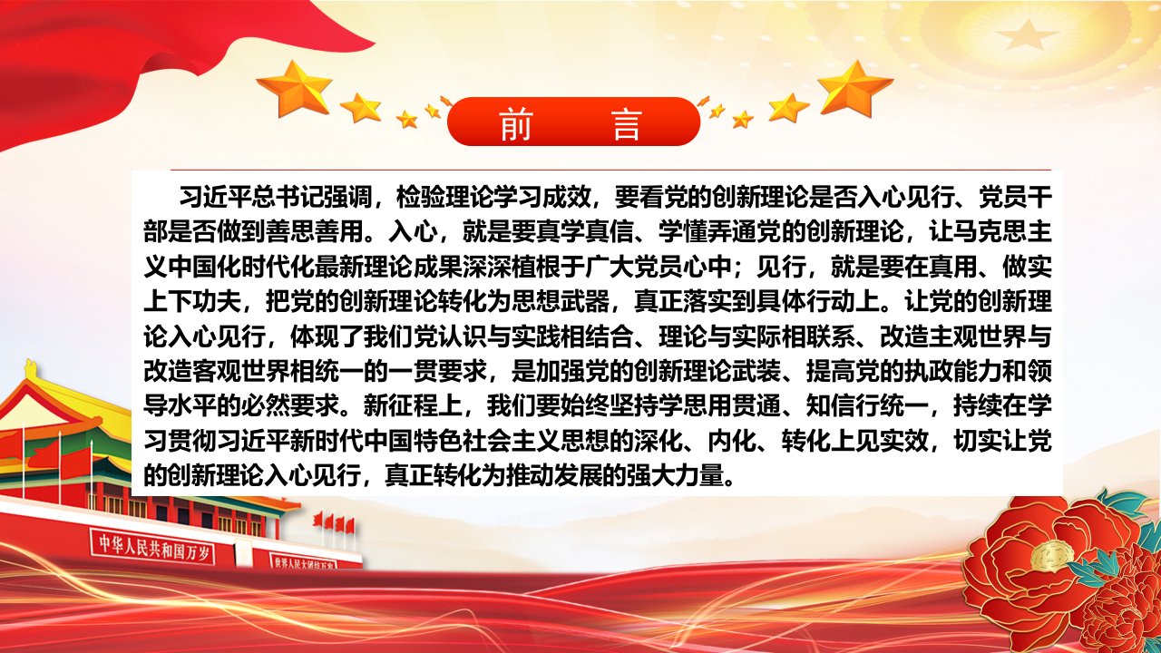 2024让党的创新理论铭于心见于行ppt模板(含配套讲稿)学习贯彻习近平新时代中国特色社会主义思想微课件
