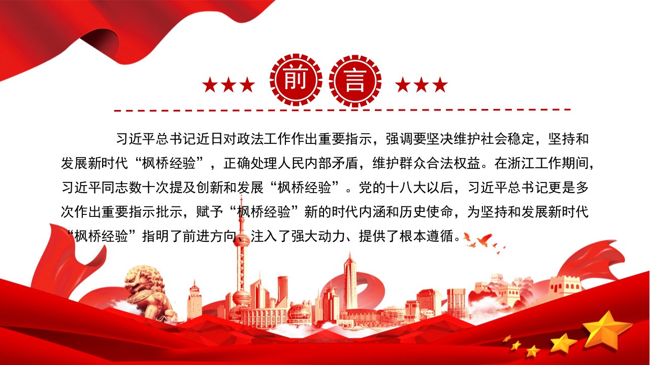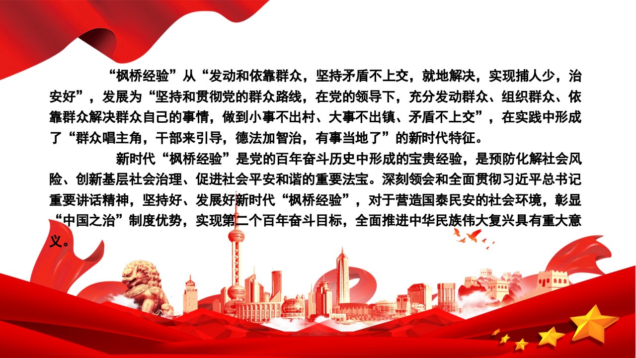 2024深入领悟新时代“枫桥经验”的价值意蕴党课ppt模板(带内容)党支部党课ppt模板下载新时代“枫桥经验”主题党课