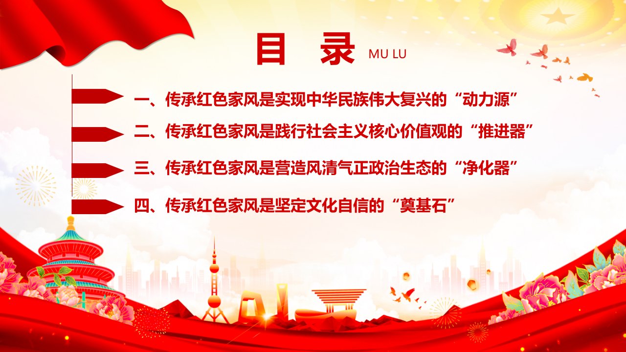 2024深入了解新时代新征程传承红色家风的时代价值党课ppt模板(含配套讲稿)讲好家风故事党课