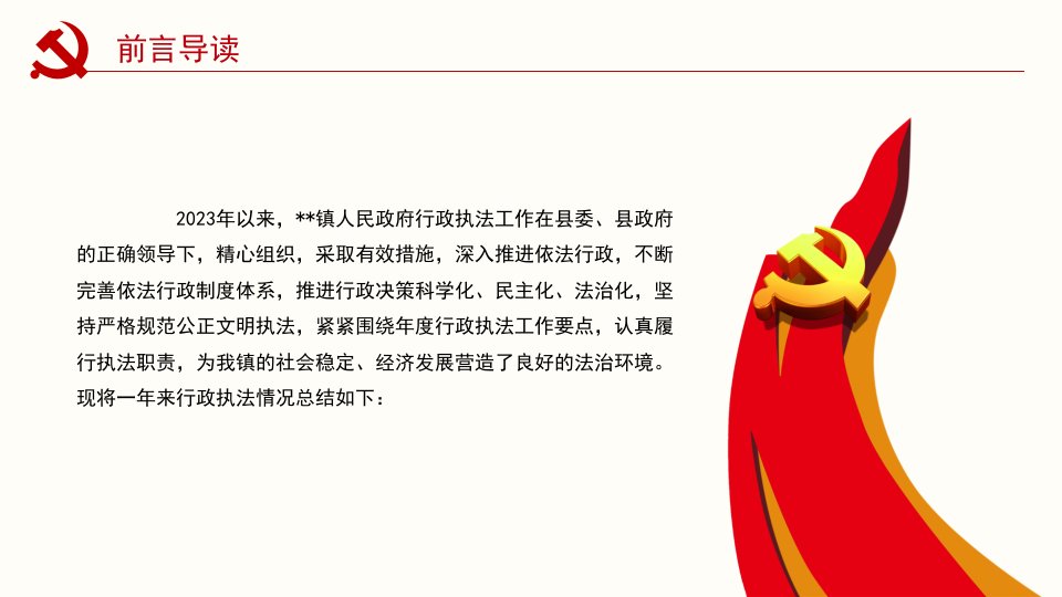 2024微党课2023年度行政执法工作总结党课ppt模板(含配套讲稿)乡镇机关单位总结计划模板下载