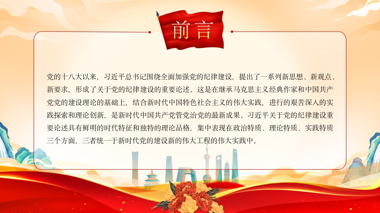 2024党课ppt模板(含配套讲稿)党的纪律建设重要论述的三维特质PPT党课课件模板