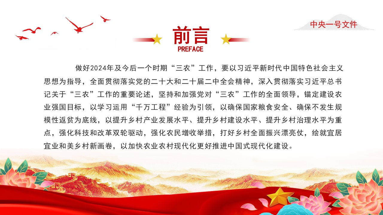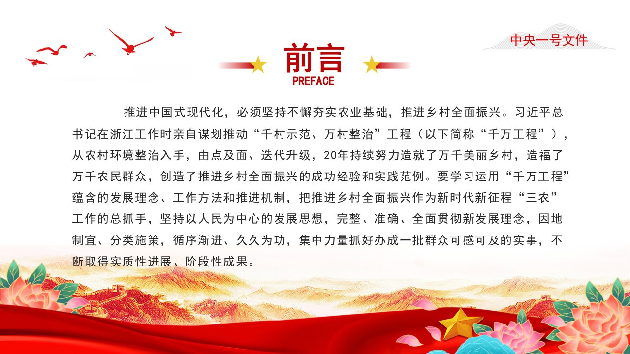 2024中央一号文件全文党课ppt模板(含配套讲稿)关于学习运用千村示范万村整治工程经验有力有效推进乡村全面振兴的意见课件