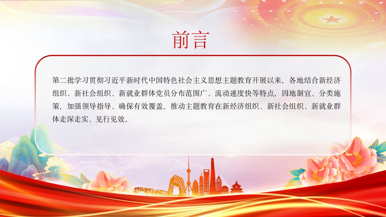 标题:2024红色简洁三新领域主T教育经验做法ppt模板(带内容)党课