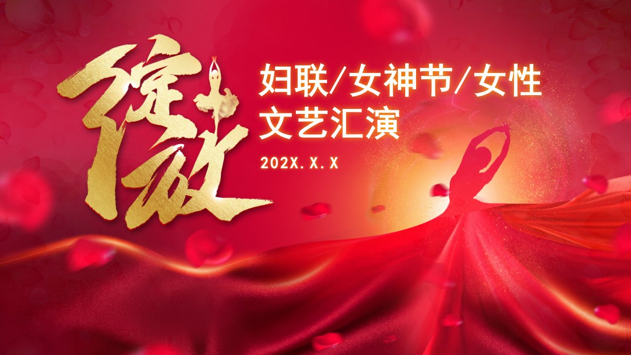 标题:2024微党课绽放妇联妇女节女神节党课ppt模板(带内容)舞动的女人PPT模板