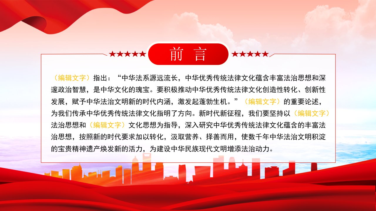 2024深入把握中华优秀传统法律文化所蕴含的法治思想党课ppt模板(带内容)讲党课ppt模板下载