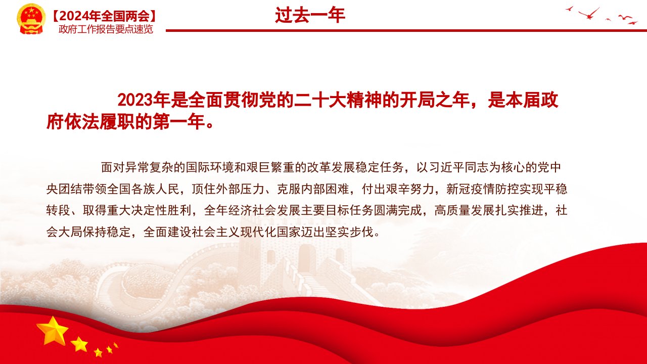 2024两会政府工作报告要点党课ppt模板(带内容)学习全国两会精神专题微党课课件模板