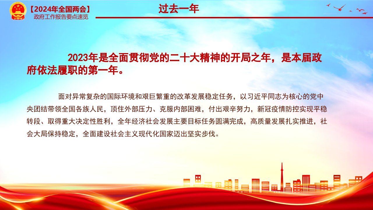 2024政府工作报告要点速览党课ppt模板(带内容)深入学习贯彻全国两会精神党课课件